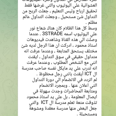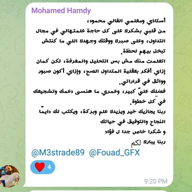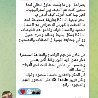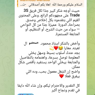 رؤيته واضحة: التعليم الحقيقي يبدأ من متداول حقيقي، ولهذا تم بناء نظام 3S ليكون مساراً عملياً يُطبّق خطوة بخطوة داخل السوق، مدعوم بمجتمع تداول احترافي يساعدك على الالتزام والتطور يومياً.